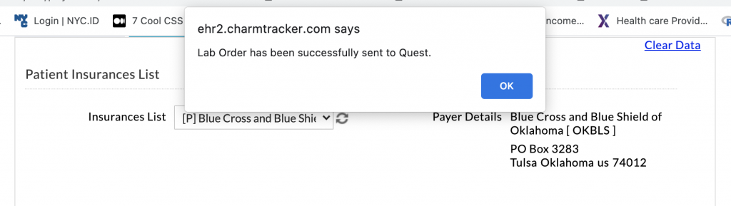 The labs we order in Charm are via our interface with DLO/Quest. Labs ordered this way have their results flow back into Charm resulting in a seamless workflow. Use of outside labs is discouraged as it adds an administrative burden to the staff to import and update results for you to review.