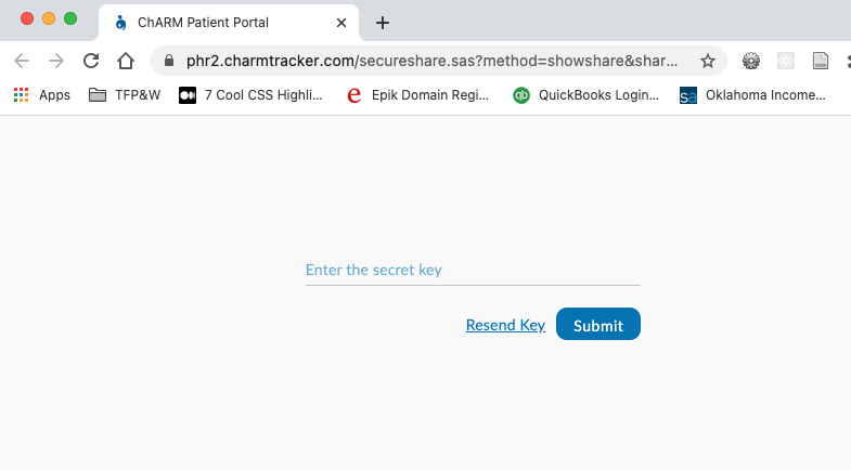 Clicking the link will take the recipient to a landing page that will ask them for a secret key.
