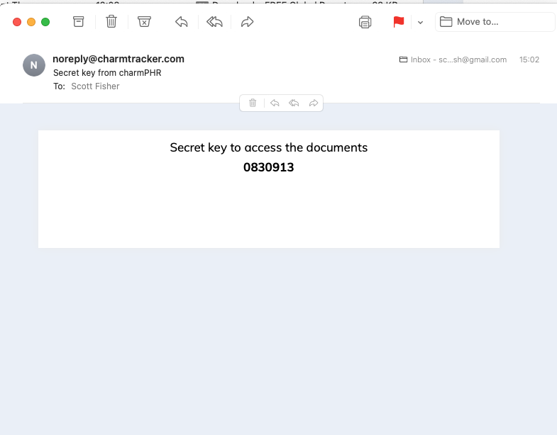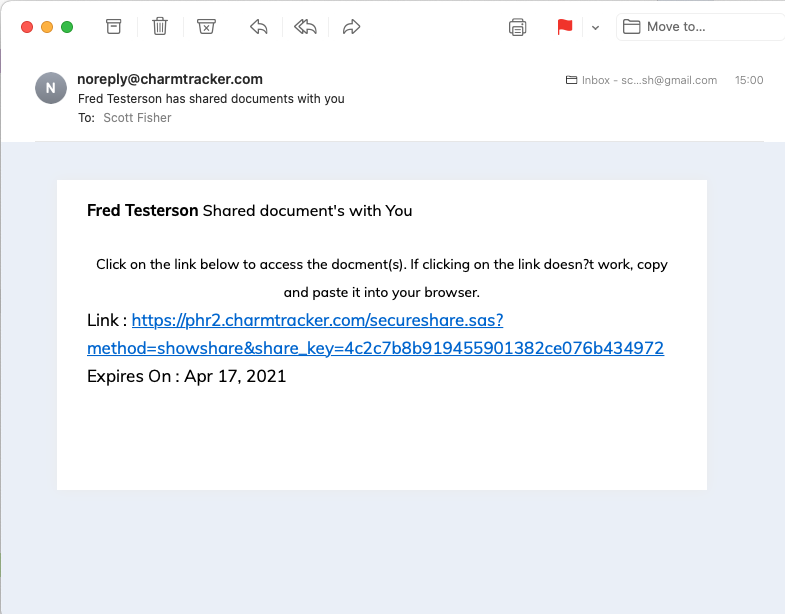 After the patient shares the note with someone via email, the recipient will receive an email notifying them that a document has been shared.